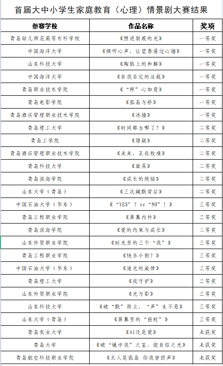 中国海洋大学在青岛市首届大中小学生家庭教育(心理)情景剧大赛中斩获佳绩!
